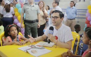 En esta emisión estuvo acompañado de menores del club de lectura itinerante, con quienes compartió la lectura del cuento infantil Rin Rin Renacuajo.