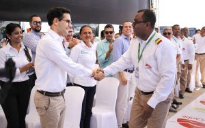 “En un mes Transcaribe llega a su segundo año de operación comercial y es importante escuchar testimonios como los de Gerardo González, que nos contó cómo Transcaribe le cambió la vida estos mensajes, estas palabras comprueban que este proyecto valió la pena. Que cada día tenemos más motivaciones y mayores compromisos para la consolidación y la voluntad inquebrantable de no cesar en el empeño de crecer en servicio, seguridad y comodidad”, expresó Sergio Londoño Zurek, mandatario de los cartageneros, durante la oficialización de la llegada de 47 buses que refuerzan el parque automotor del sistema.
