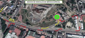 Para este día se cerrarán entre las 5 a.m. y 7 p.m. la carrera 17, entre la calle 30 y avenida Pedro de Heredia. Todo el sector frente al Castillo San Felipe de Barajas.