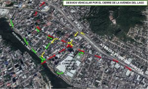 Los vehiculos que vayan al centro comercial Caribe Plaza podran seguir por la Avenida del Lago hacia el centro y salir por la calle 29 D hacia su destino.
