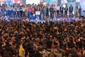 Yo pienso ahora que esta campaña nunca fue sobre mí, fue sobre ustedes porque aquí somos un equipo, y esta campaña que empezó hace dos años y medio, contra muchas adversidades, y la fuimos sorteando una a una, tuvo algo transformador, y es que aquí hubo un sentimiento de convicción y sobre todo el anhelo de pasar para siempre la página de la vieja política de las componendas, de las trapisondas, del clientelismo. Ese ha sido el éxito de esta campaña, aquí no tenemos libretos, aquí no tenemos cosas de maquillaje, aquí no tenemos un discurso simplemente milimétrico, aquí construimos una propuesta con los ciudadanos, escuchado como debe ser la política del Siglo XXI.