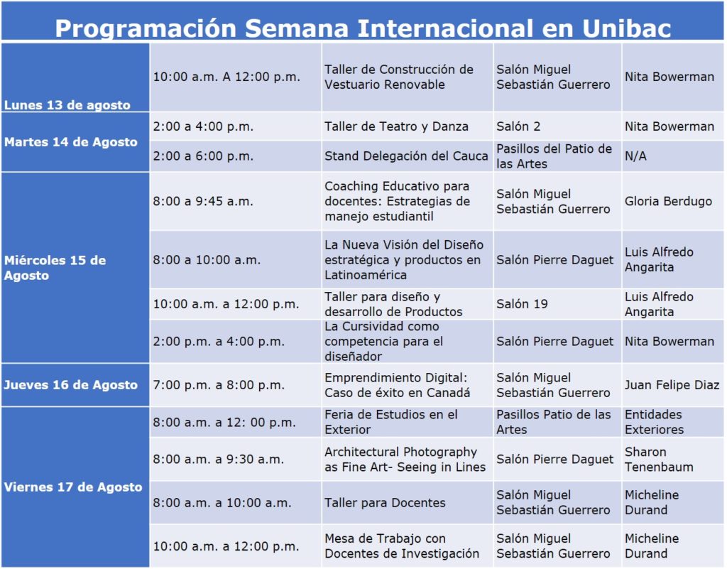 Toda la agenda y detalles de los conferencistas de la Semana Internacional se puede consultar en https://www.semanainternacional.edu.co
