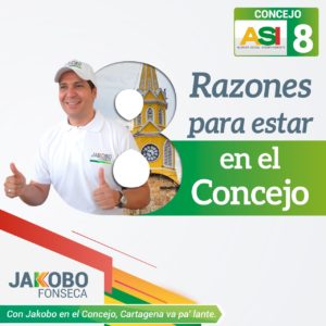 Estas son las ocho razones que el abogado y consagrado artista Jakobo Fonseca está planteando en su campaña para llegar al Concejo de Cartagena:
