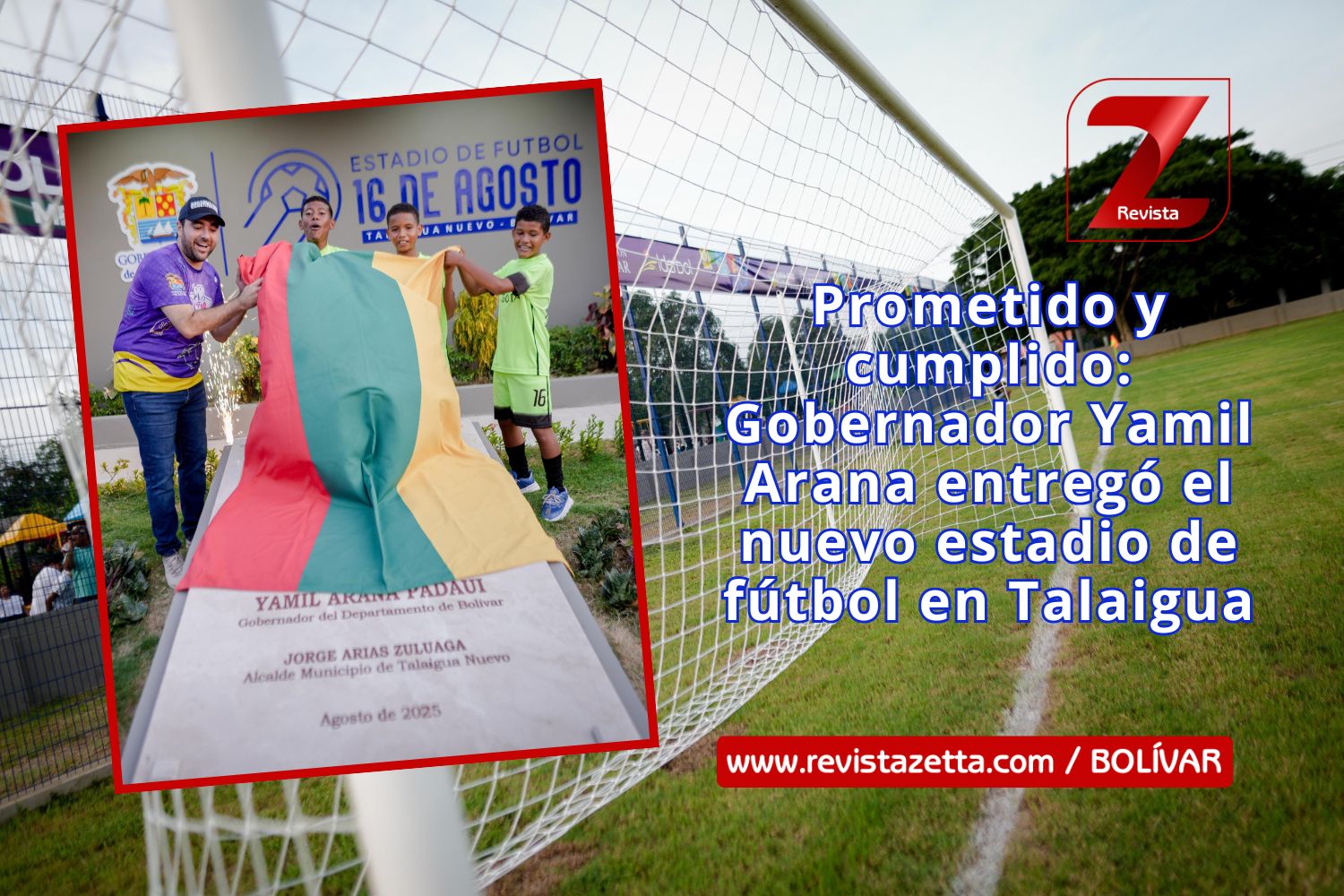 Talaigua, 22 agosto de 2025. – El gobernador de Bolívar, Yamil Arana Padauí, puso al servicio de la comunidad el nuevo Estadio 16 de Agosto del municipio de Talaigua, una obra emblemática que representa un paso histórico para el deporte y la recreación en la región.