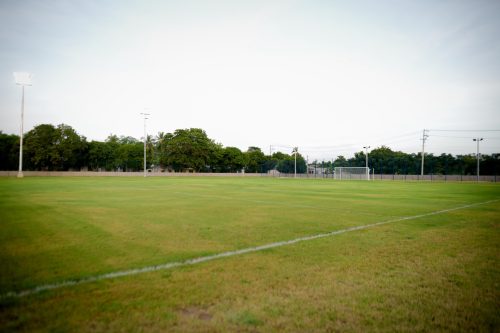 •Cancha en grama natural para fútbol 11, con cerramiento perimetral de alto impacto, bancos técnicos y moderno sistema de riego.