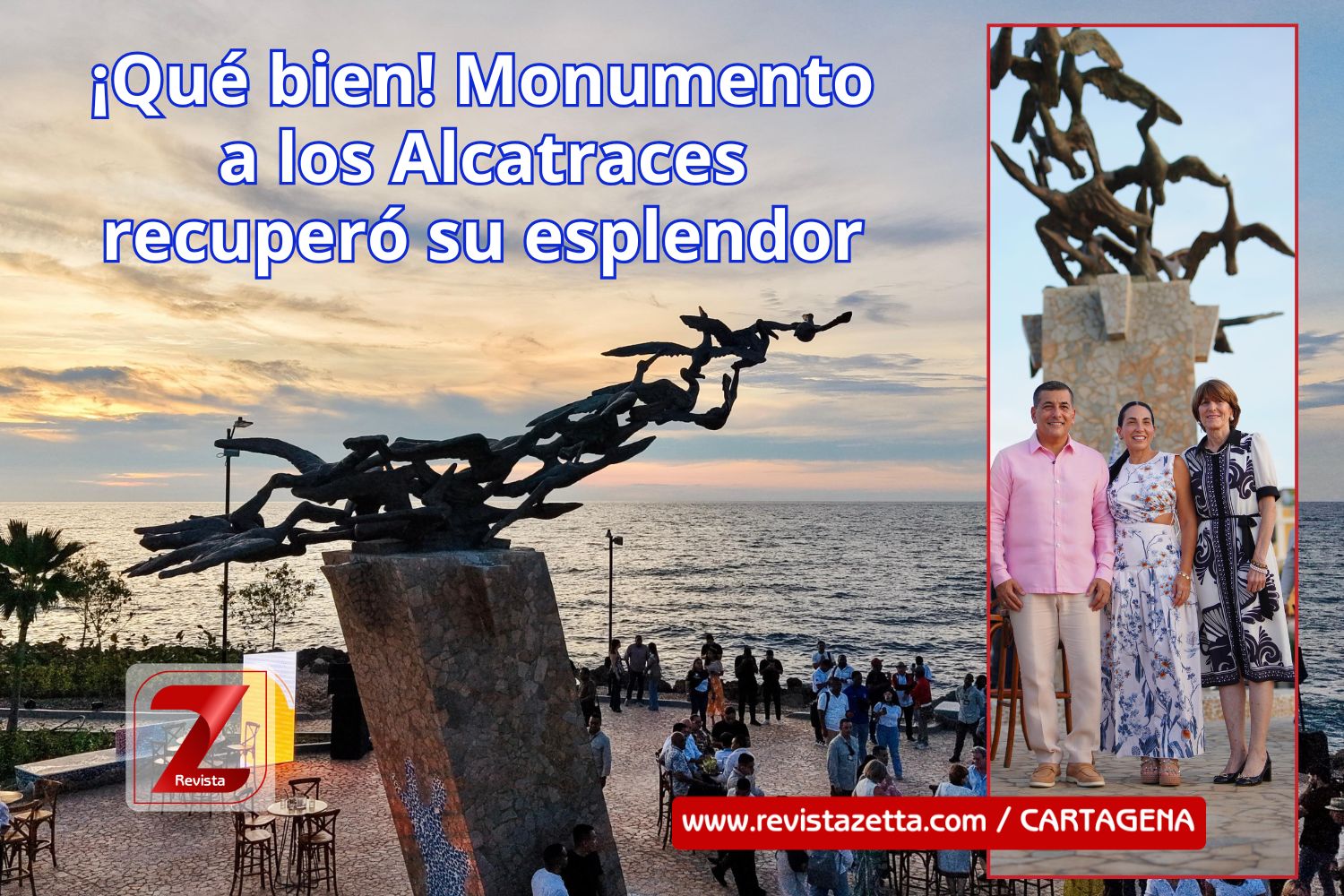Alcalde Dumek Turbay devela transformación del Monumento a Los Alcatraces, testigo privilegiado del mar y los atardeceres cartageneros, luego de 12 años en completo abandono.