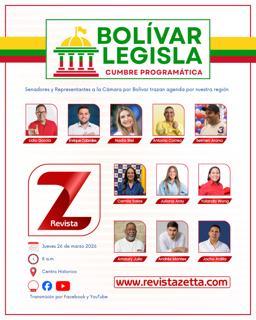 Cartagena de Indias, 12 de marzo de 2026.- El primer gran encuentro de los congresistas recién electos en Bolívar será el jueves 26 de marzo próximo, convocados por Revista Zetta en la cumbre programática denominada “Bolívar Legisla”.