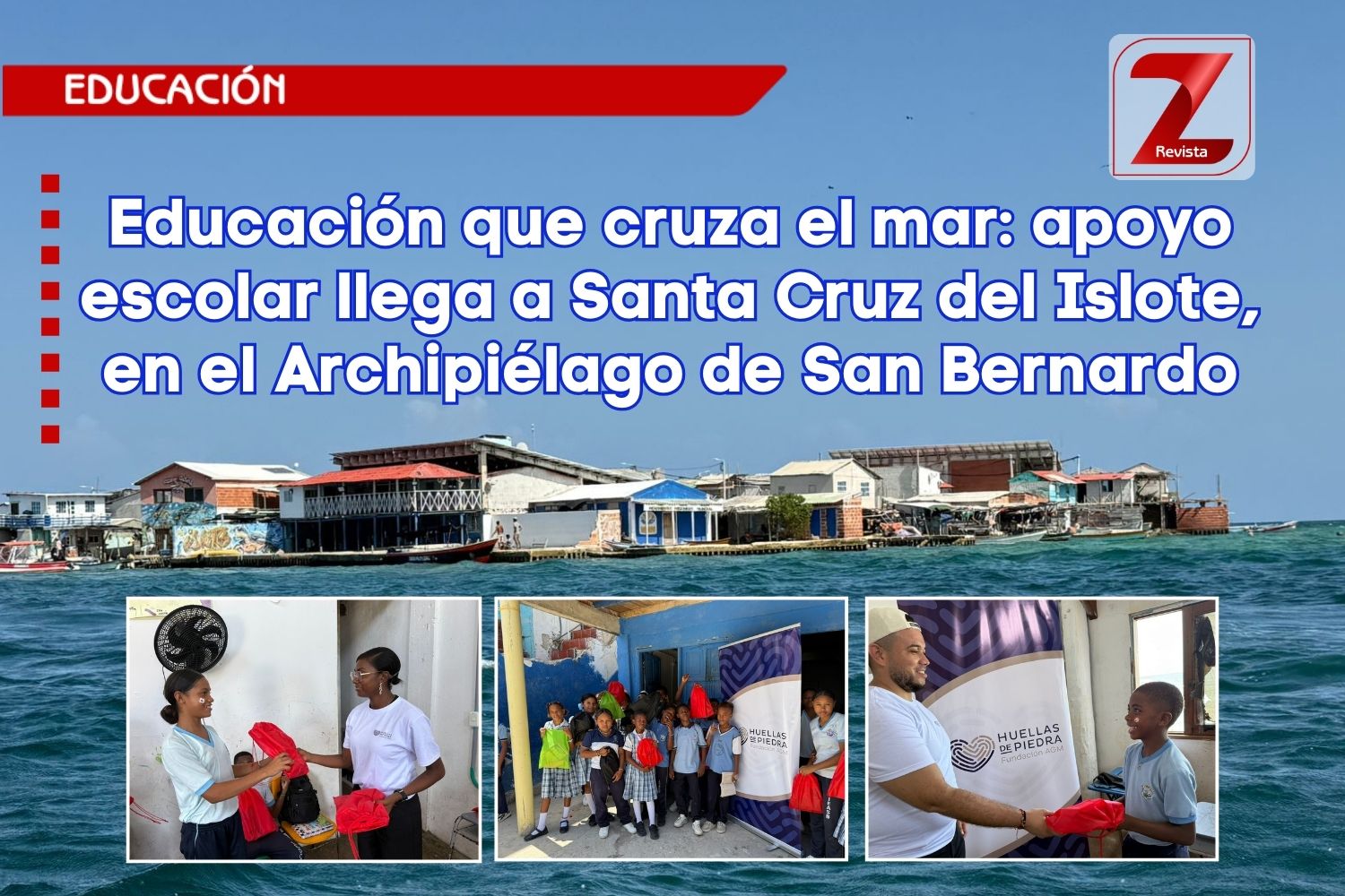 La Fundación AGM Huellas de Piedra, en alianza con Cemento País y la Sociedad Portuaria Mardique, entregó 250 kits escolares destinados a estudiantes de primaria y secundaria de la Institución Etnoeducativa del Archipiélago de San Bernardo, una comunidad educativa que diariamente enfrenta los retos de la distancia, la falta de energía eléctrica y la insularidad para mantener viva la educación en este rincón del Caribe colombiano.