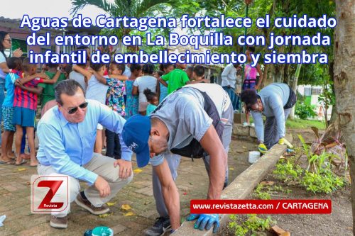 Aguas de Cartagena fortalece el cuidado del entorno en La Boquilla con jornada infantil de embellecimiento y siembra